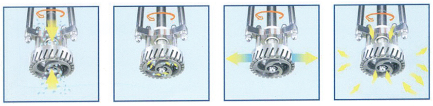 物料在水鍋、油鍋內(nèi)通過加熱、攪拌進行混合反應(yīng)后,由真空泵吸入乳化鍋,通過乳化鍋內(nèi)上部的攪拌、聚四氯乙烯刮板迎合攪拌鍋形體,掃凈刮壁粘料,使被刮取的物料不斷產(chǎn)生新界面,再經(jīng)過葉片與回轉(zhuǎn)葉片的剪斷、壓縮、折疊,使其攪拌、混合而向下流往鍋體下方的均質(zhì)器處,物料再通過旋轉(zhuǎn)的切割輪與固定的切割套之間所產(chǎn)生的強力的剪斷、沖擊、亂流等過程,在剪切縫中被切割,破碎成200nm-2um的微粒,由于乳化鍋內(nèi)處于真空狀態(tài),物料在攪拌過程中產(chǎn)生的氣泡被抽走。